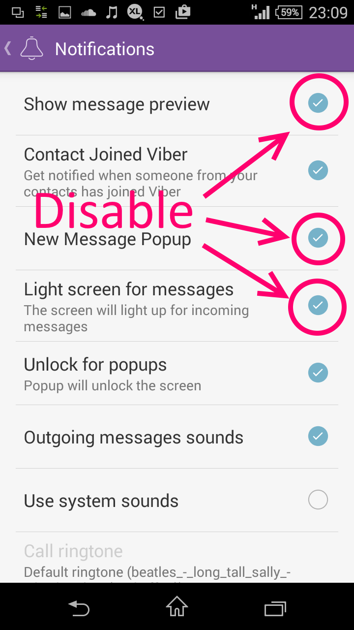 Trabla: Viber: disable notification when phone is locked ( protect your privacy)