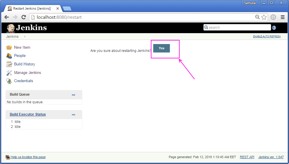 Trabla: Jenkins: restart Jenkins via url ( manualy )